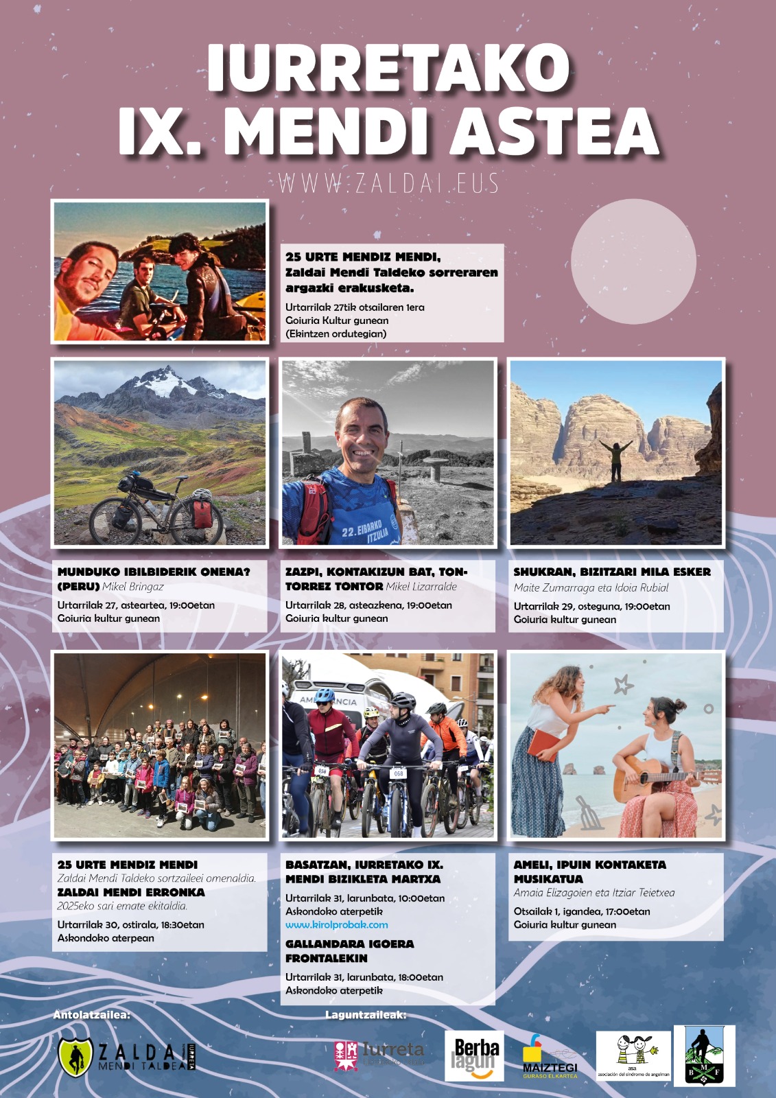 Tartean hainbat ekintza izaten dira: Hitzaldiak, dokumentalak, ikastaroak, Zaldai mendi erronkako sari emate ekitaldia, Iurretako mendi bizikleta martxa, mendi irteerak, umeei begirako ekintzak...